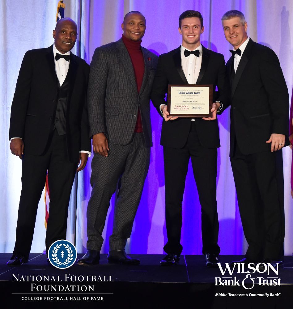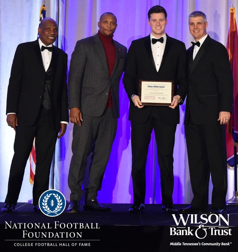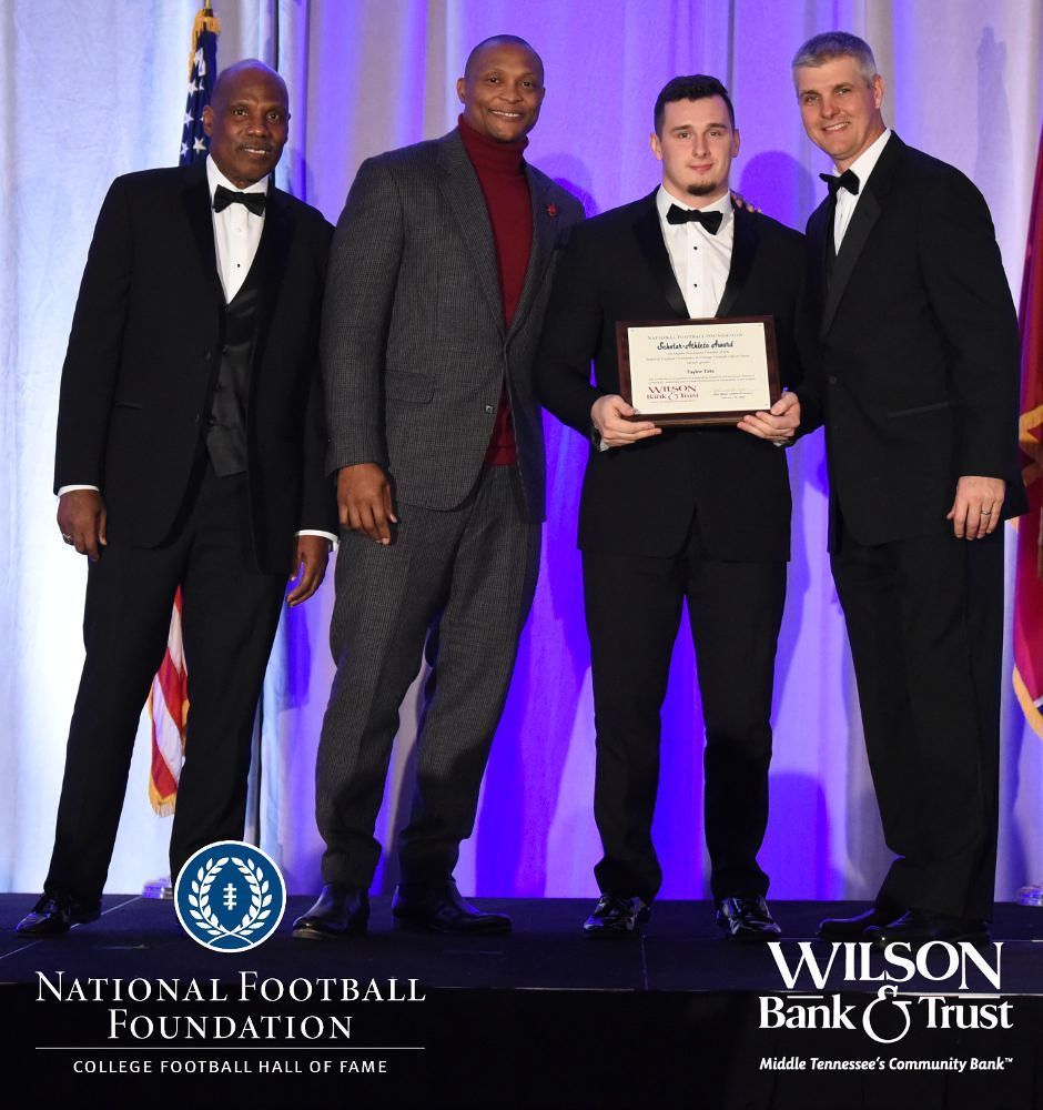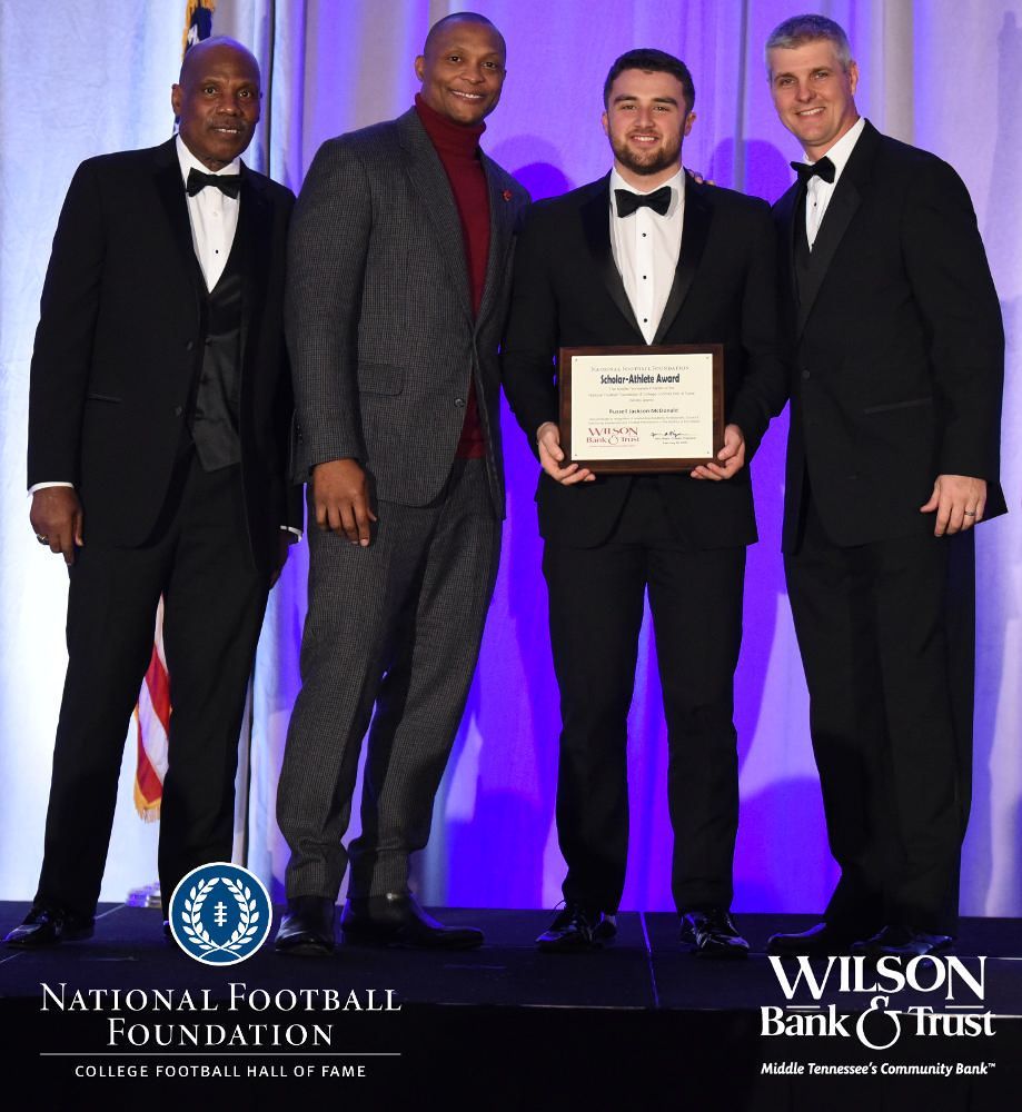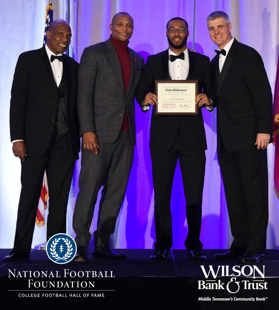 All plaques presented by retired NFL players Brenard Wilson (far left), Eddie George (second from left) and Kelly Holcomb (far right). All honorees are third from left. Not pictured: Justin Jamal Anthony Brown (Tennessee State University).