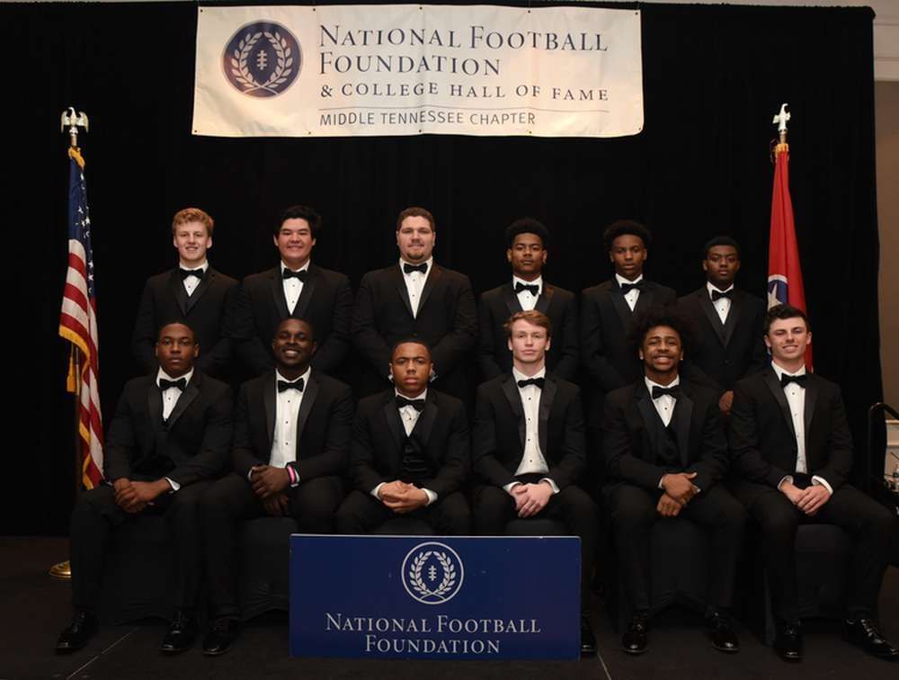 Back row, from left: Tyler Hanner Allen, Montgomery Bell Academy; Jackson Reece Elliot, Nashville Christian School; Jacob Daniel King, Overton; Jaylan Alavsius Granberry, Pearl-Cohn Entertainment Magnet; Robert Lilley Sneed, Stratford; Paul Rodney McKoy, Jr., Whites Creek.