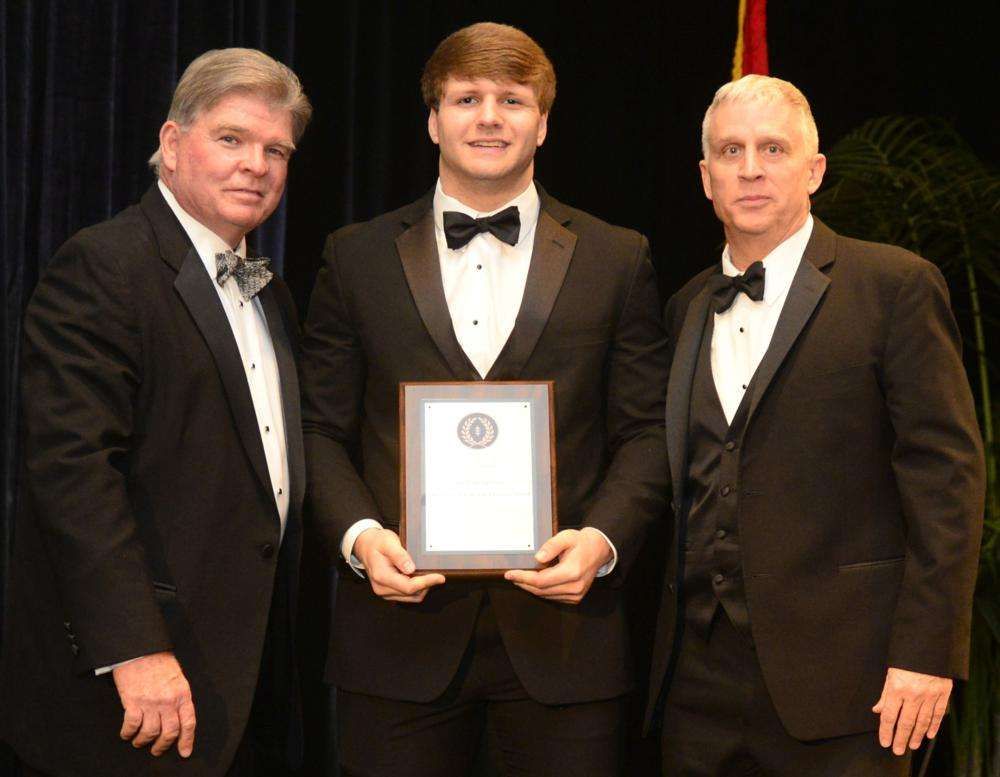 Jake Gregory of Trousdale County High School was selected at the “Admiral William P. Lawrence Award.” Presenters were NFF board members Mike Hargis (left) and Clint Satterfield.
