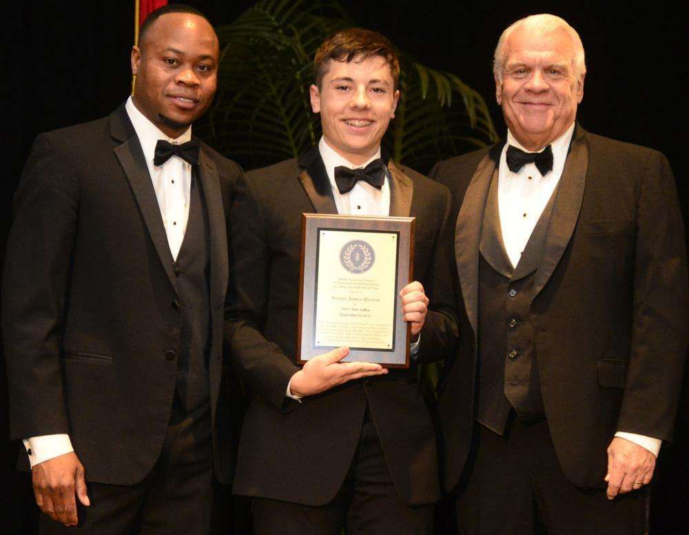 Trevor Horton of Davidson Academy received the “2018 Bob Sullins Inspiration Award.” Award presenters were NFF board members Derrick Burroughs (left) and Bob Sullins.