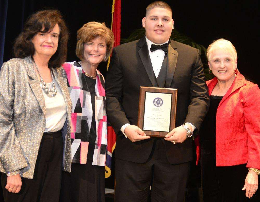 Ricardo Ruiz of Glencliff High School received the “Jim Barrom Spirit Award.” Presenters were (from left) Harriett Spear, Judith Barrom and Wallene Dockery Leek.