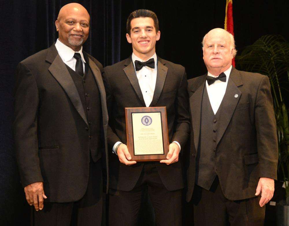 This award is presented to a Middle Tennessee student-athlete who exemplifies the highest qualities of sportsmanship. The award named for the late Cotton Clark and current board member Scott Brunette who was a long-time executive secretary of this NFF chapter. Presenting the award was NFF board members Derrick Burroughs (left) and Larry Taft.