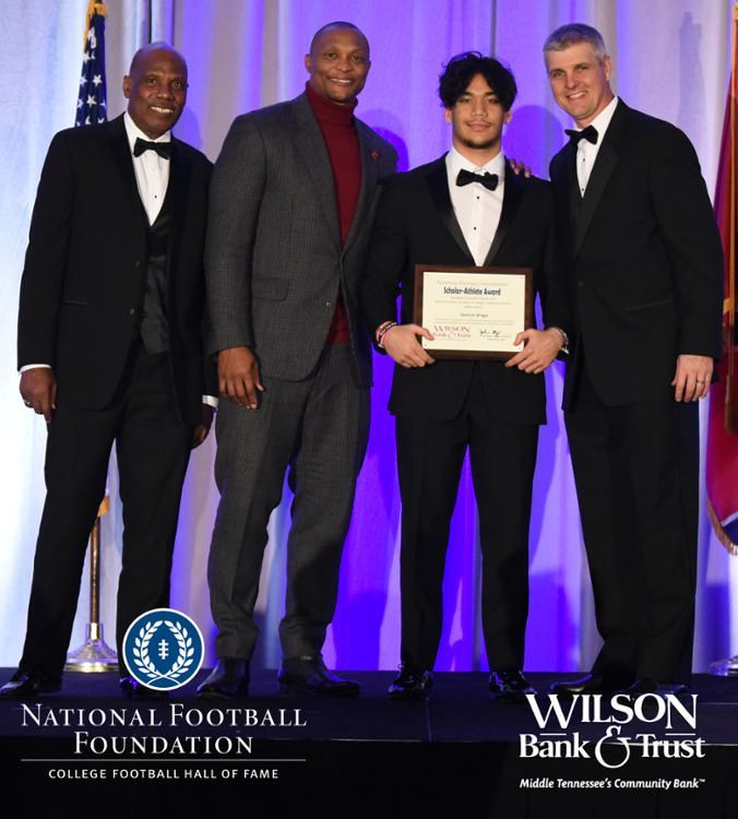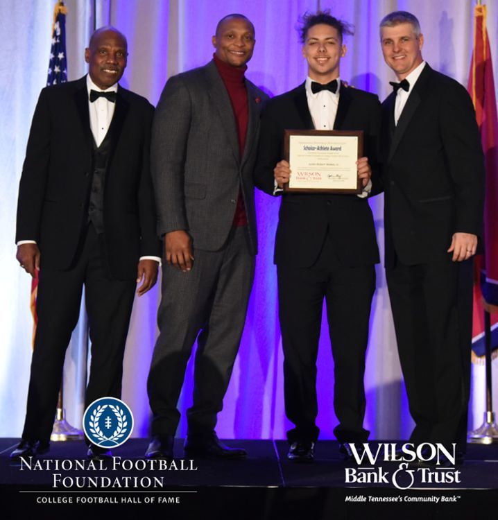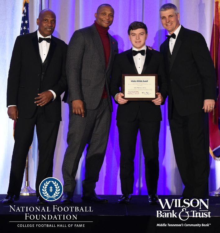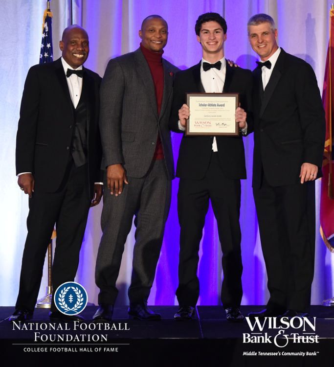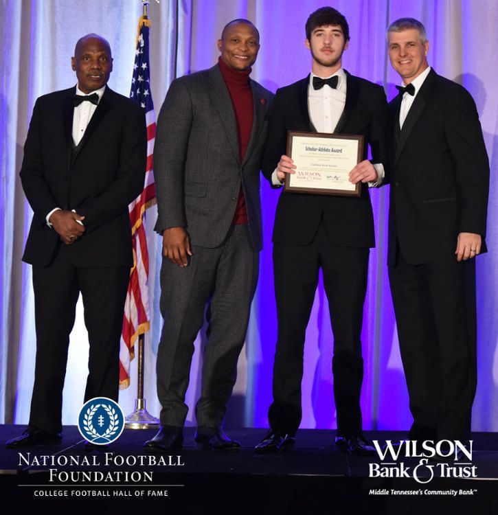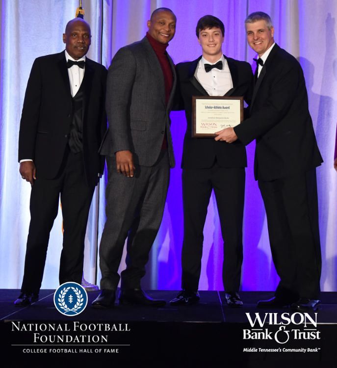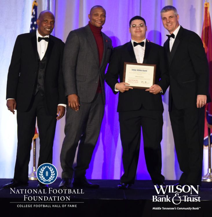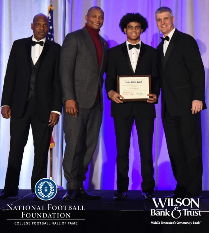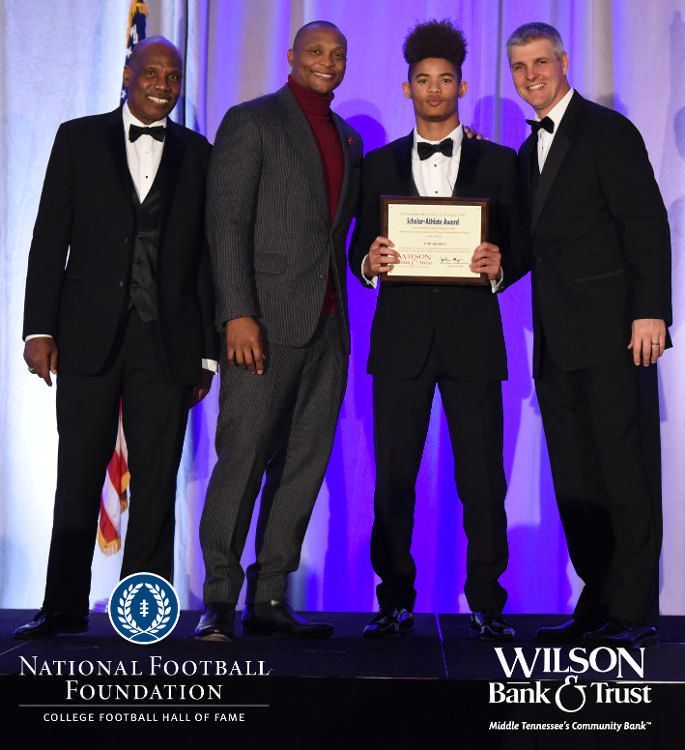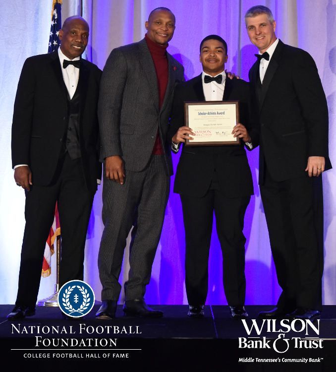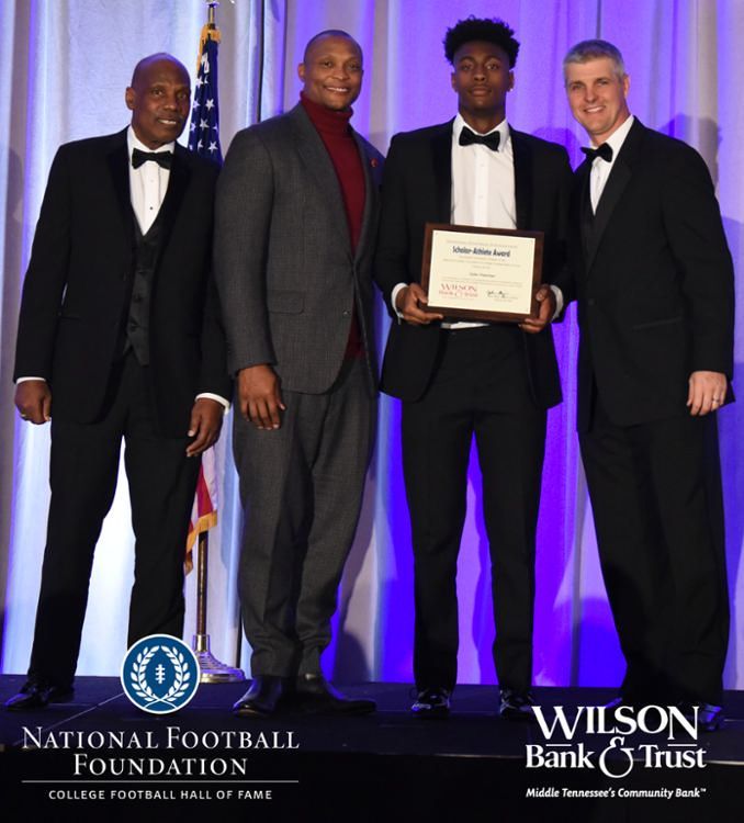 All plaques presented by retired NFL players Brenard Wilson (far left), Eddie George (second from left) and Kelly Holcomb (far right). All honorees are third from left. Not pictured: Nicholas Angelo Semptimphelter (Battle Ground Academy), Michael J. Reese (Cane Ridge High School).