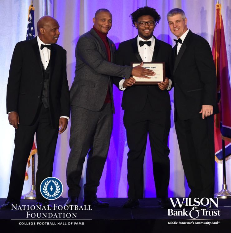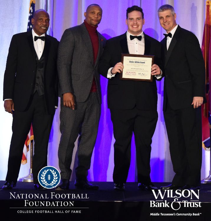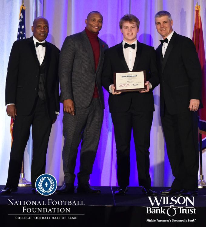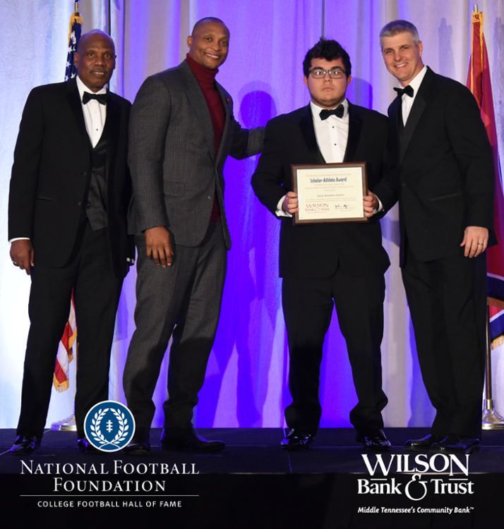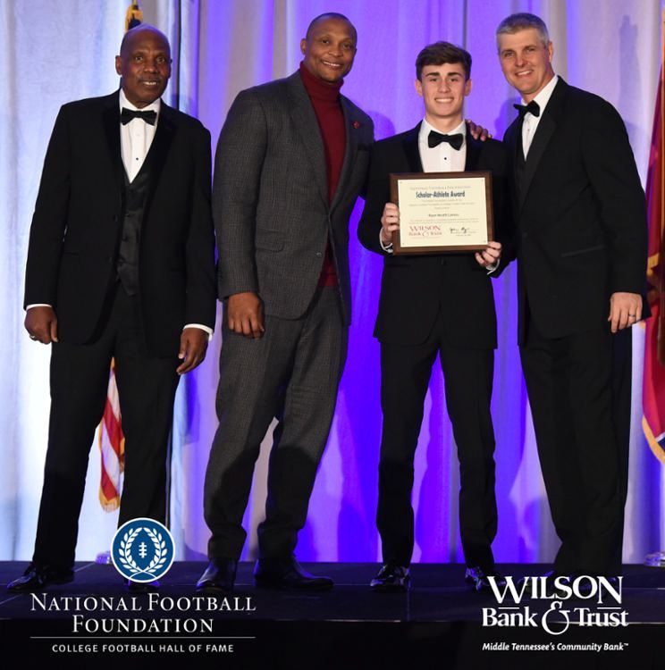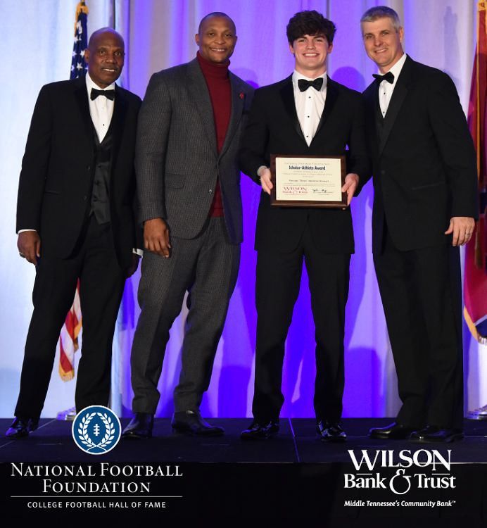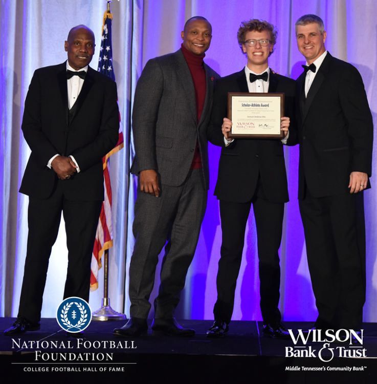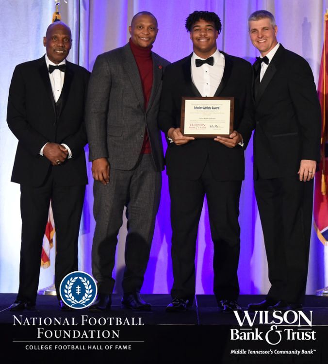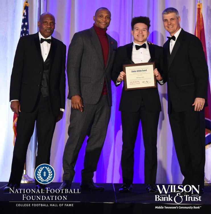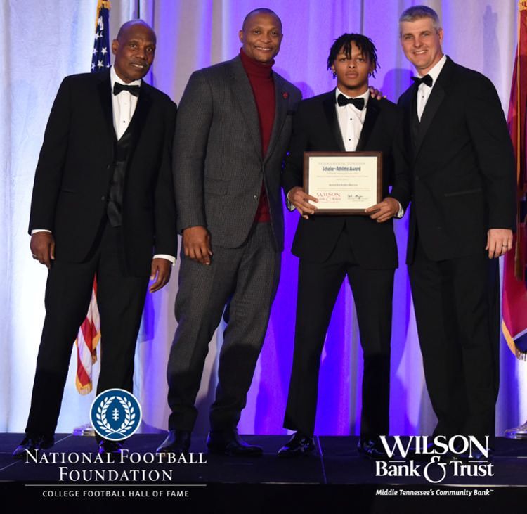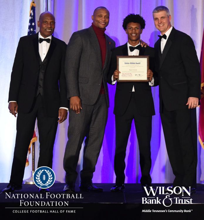 All plaques presented by retired NFL players Brenard Wilson (far left), Eddie George (second from left) and Kelly Holcomb (far right). All honorees are third from left. Not pictured: Nicholas Angelo Semptimphelter (Battle Ground Academy), Michael J. Reese (Cane Ridge High School).