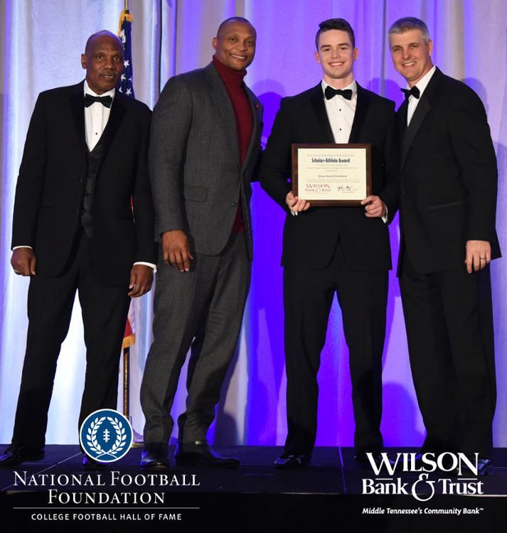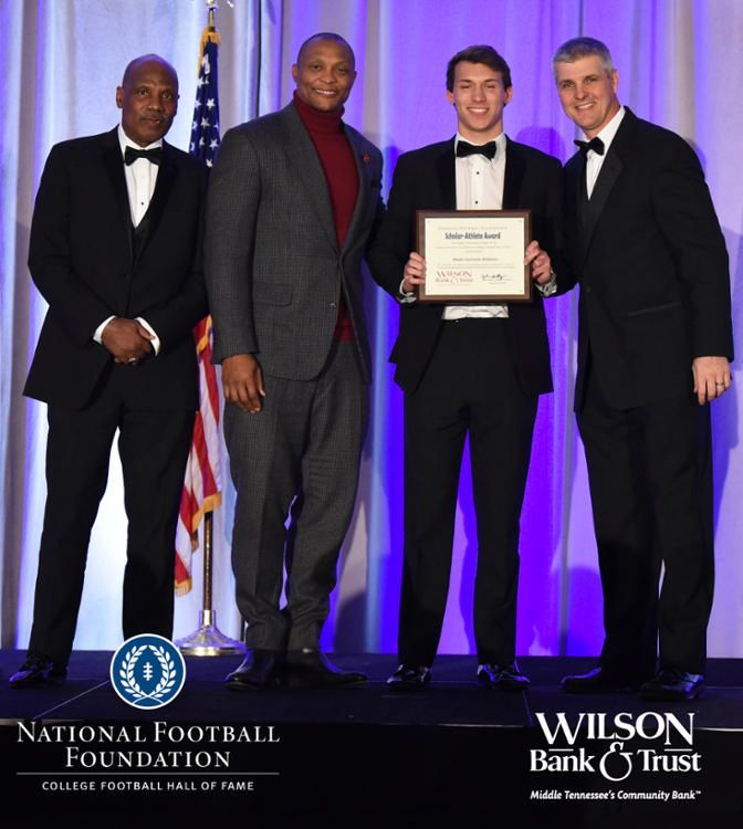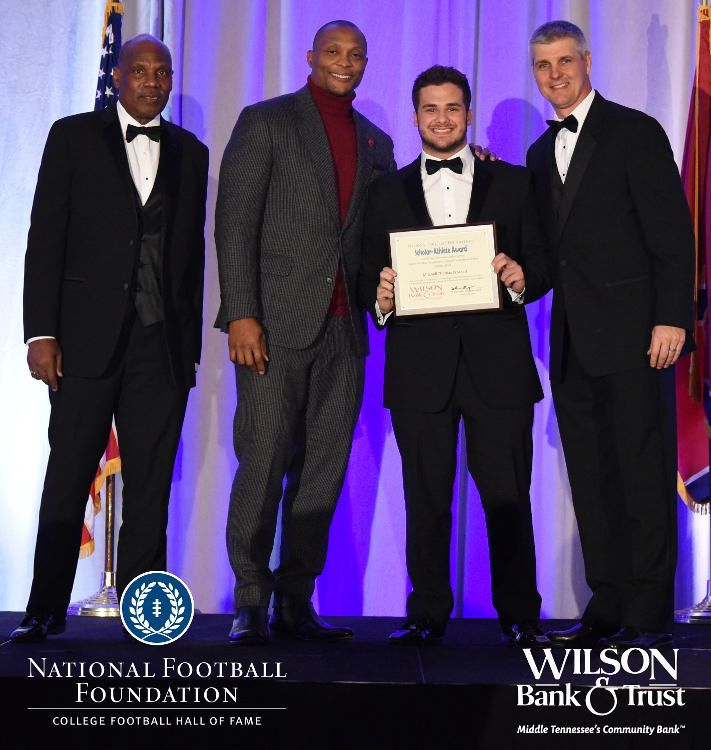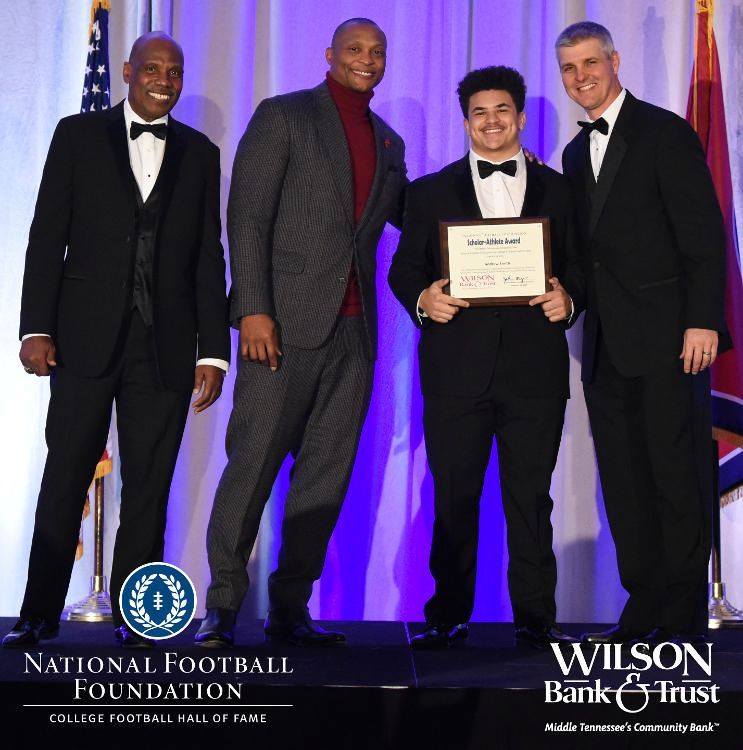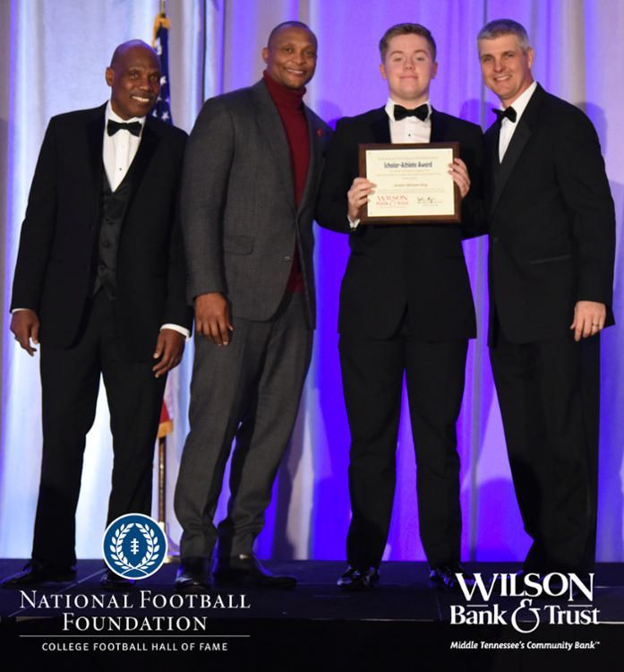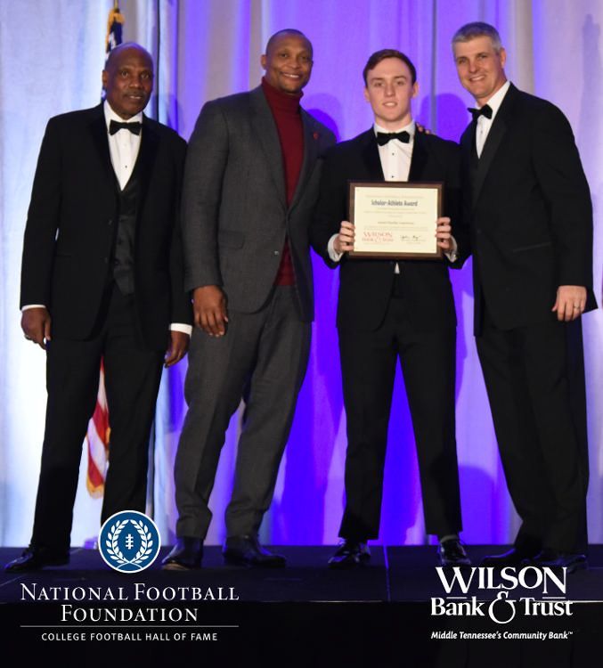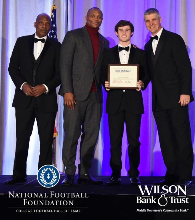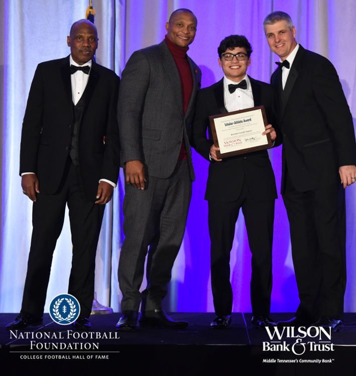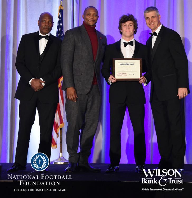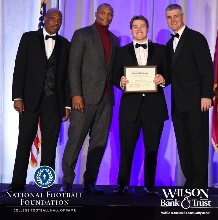 All plaques presented by retired NFL players Brenard Wilson (far left), Eddie George (second from left) and Kelly Holcomb (far right). All honorees are third from left. Not pictured: Nicholas Angelo Semptimphelter (Battle Ground Academy), Michael J. Reese (Cane Ridge High School).