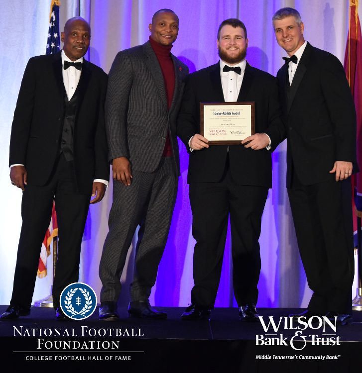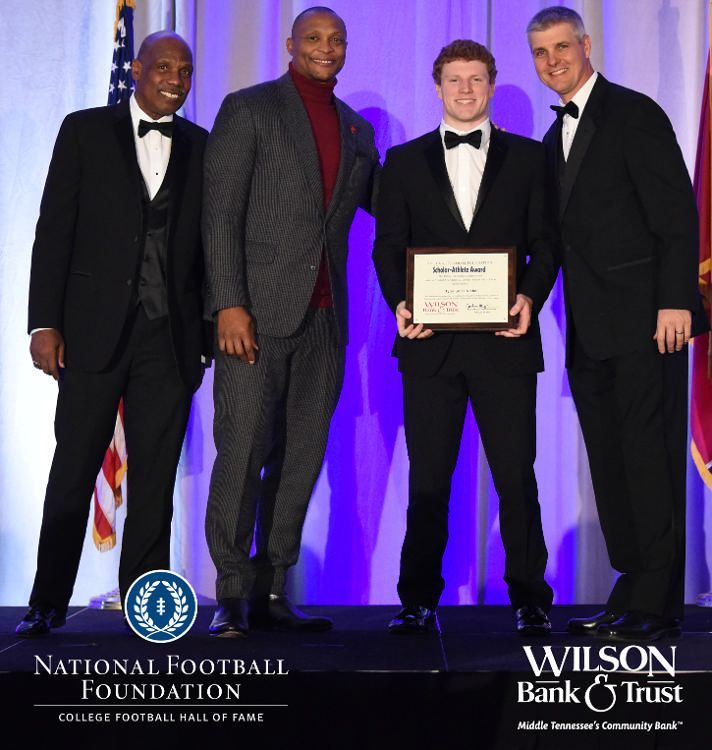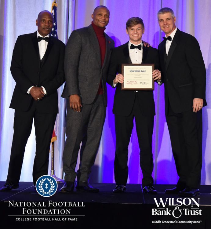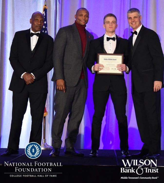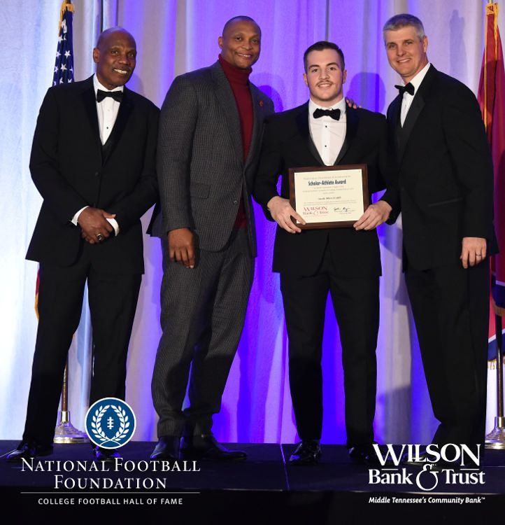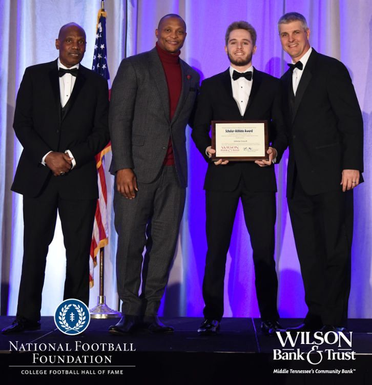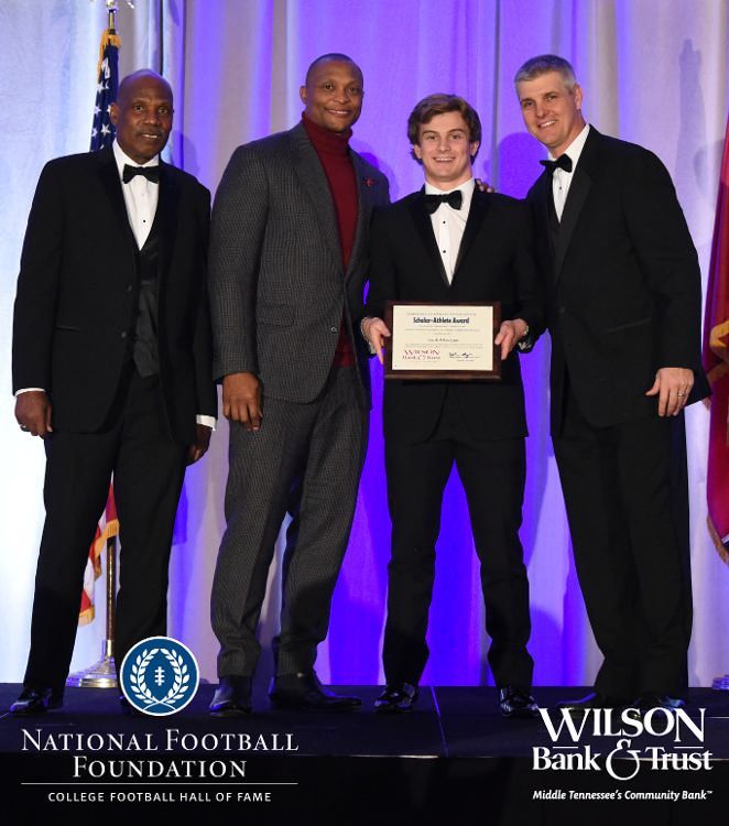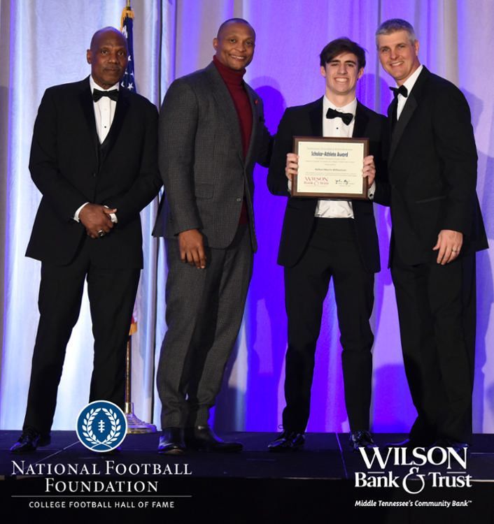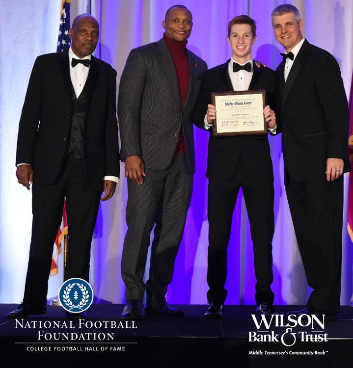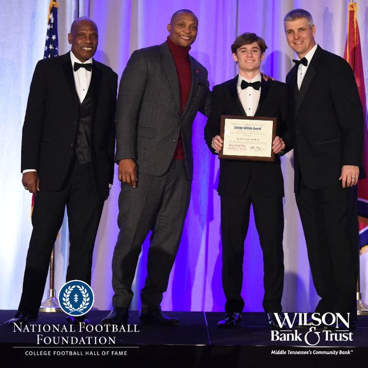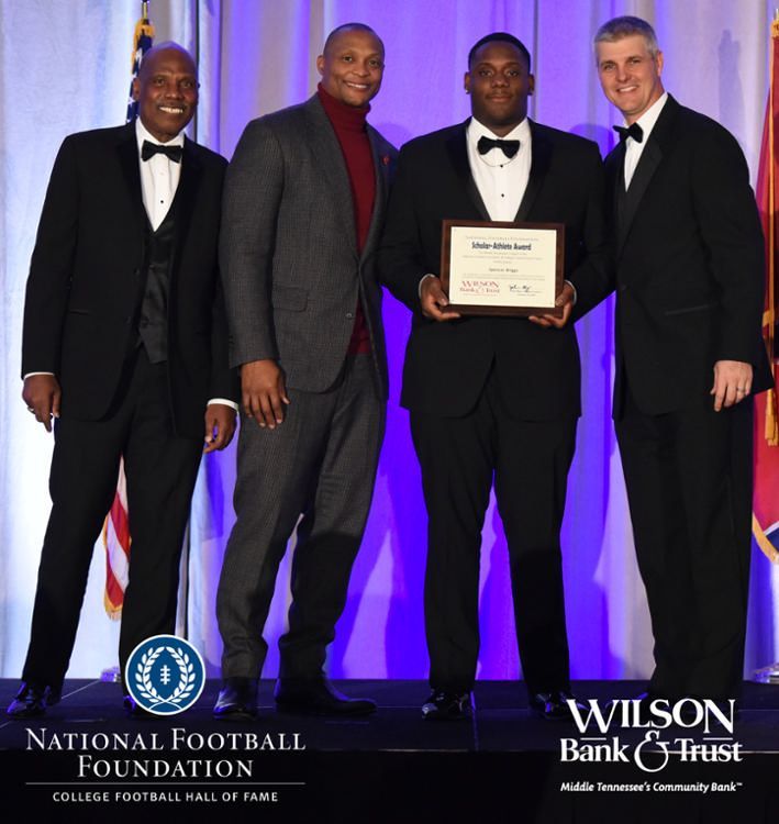 All plaques presented by retired NFL players Brenard Wilson (far left), Eddie George (second from left) and Kelly Holcomb (far right). All honorees are third from left. Not pictured: Nicholas Angelo Semptimphelter (Battle Ground Academy), Michael J. Reese (Cane Ridge High School).
