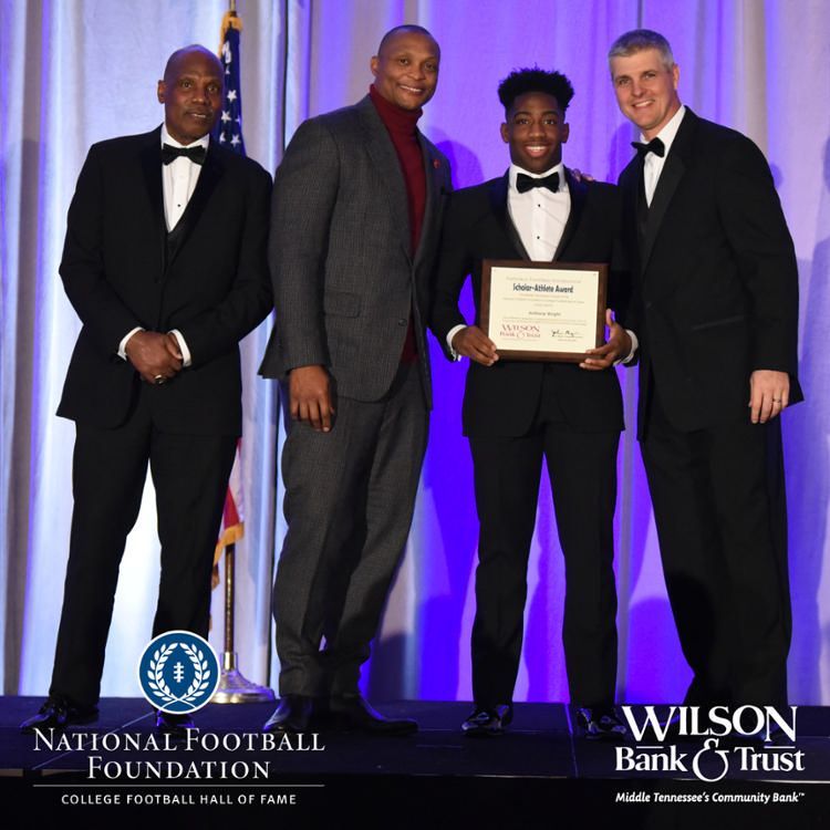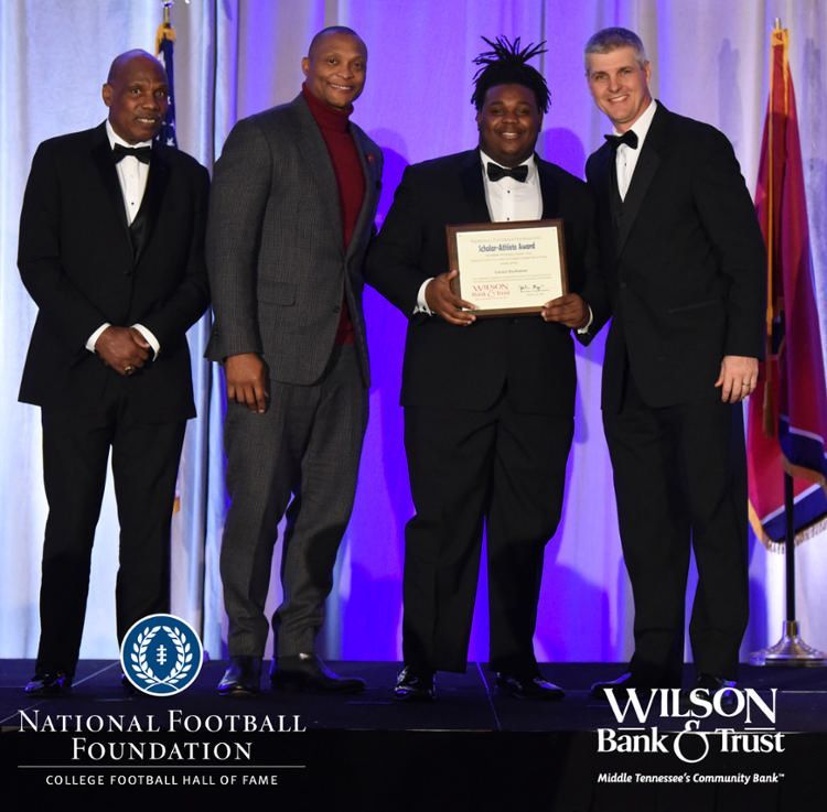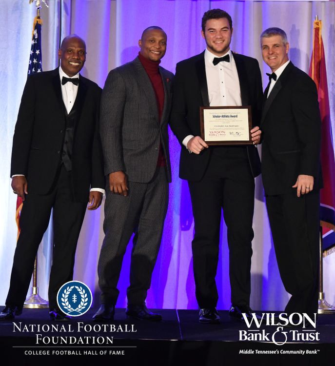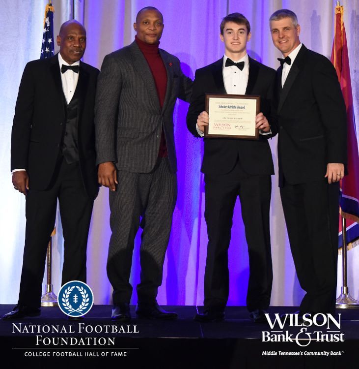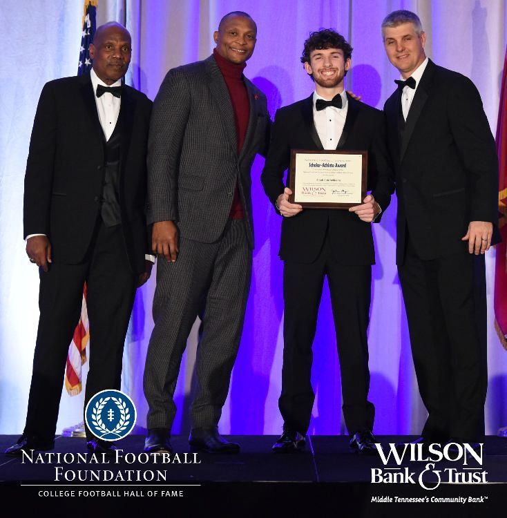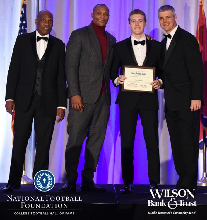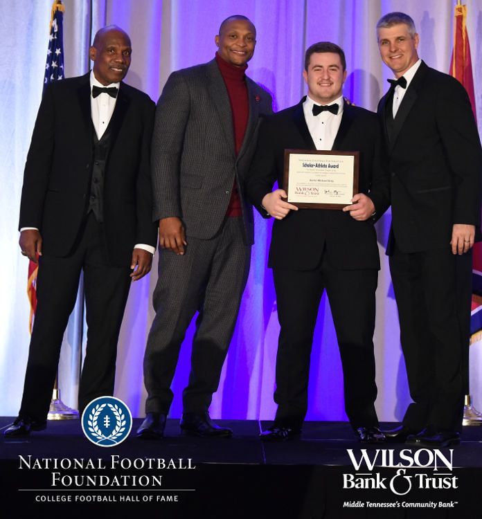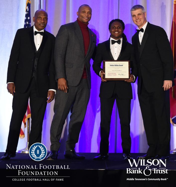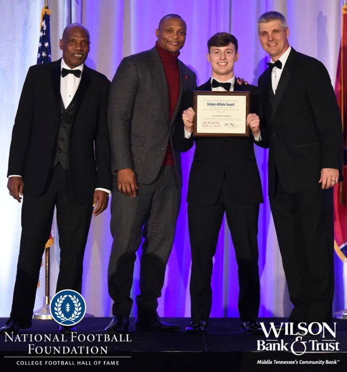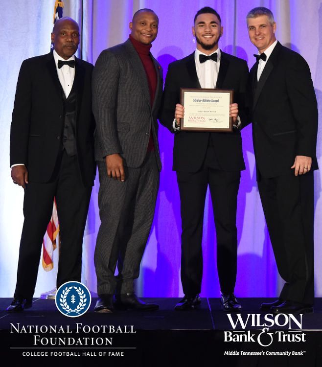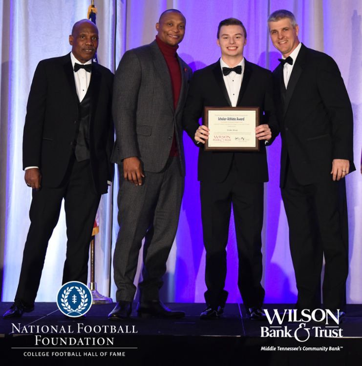 All plaques presented by retired NFL players Brenard Wilson (far left), Eddie George (second from left) and Kelly Holcomb (far right). All honorees are third from left. Not pictured: Nicholas Angelo Semptimphelter (Battle Ground Academy), Michael J. Reese (Cane Ridge High School).