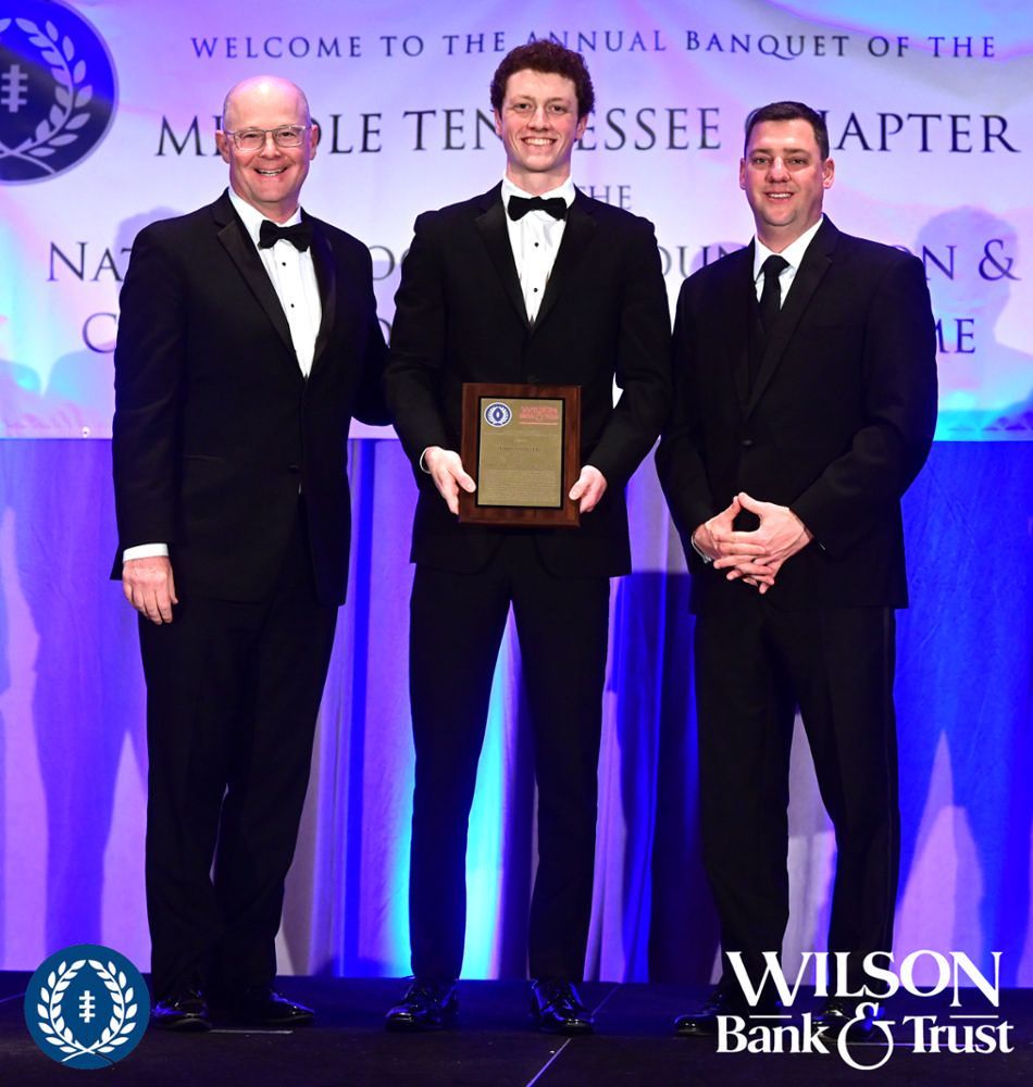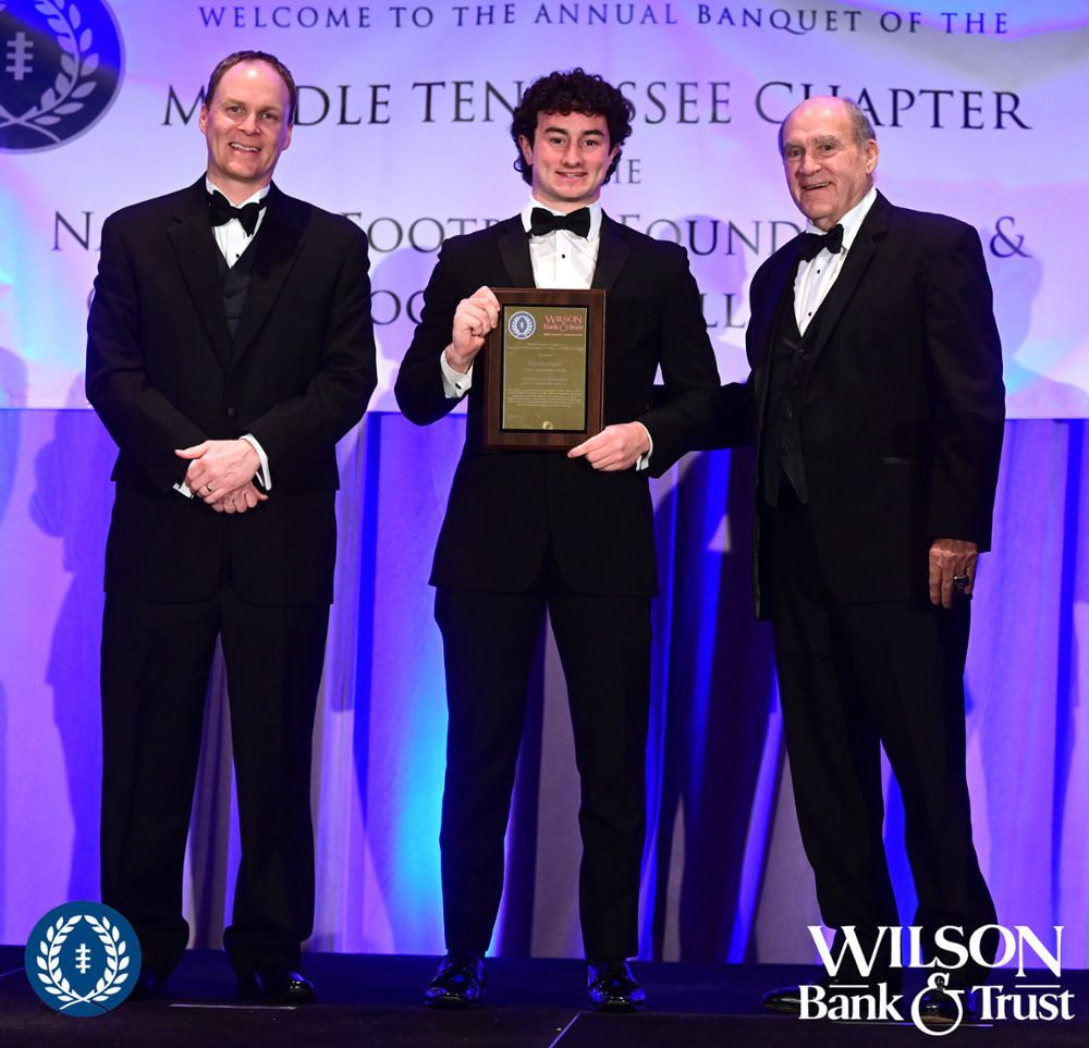 The Bob Sullins Award is presented to a Middle Tennessee high school student who serves as an inspiration to his teammates, his classmates, and members of his community. Sullins is an active NFF board member who served this chapter as president for more than a decade.