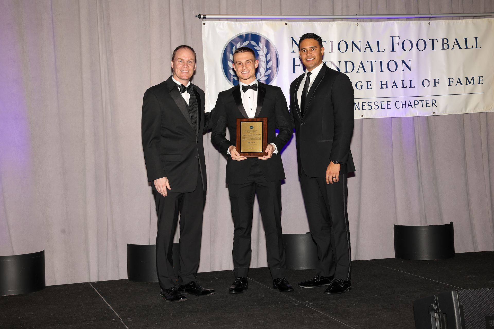 Brice Njezic of Lebanon High School received the “Joe L. Worden / Jack Redgren Courage Award” honoree. The presenters were NFF Board Members Andrew Kerr (left) and Dejay Woods (right)