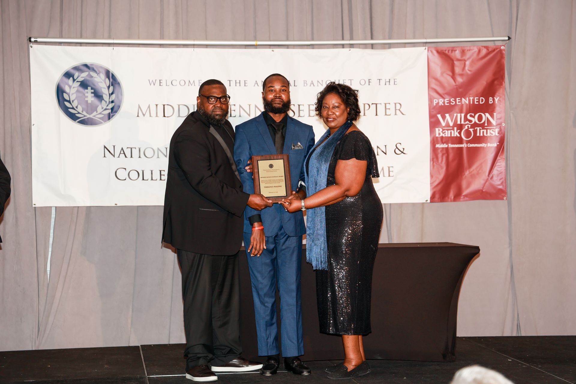 This award is named for Bonnie Sloan who attended Nashville's Litton High School before twice earning All-Ohio Valley Conference honors as a lineman at Austin Peay. He was drafted by the St. Louis Cardinals in 1973 but a knee injury cut short his NFL career after only one season. Sloan accomplished these feats despite being deaf and is one of only three deaf players to ever play in the NFL. Poplar communicated with Sloan at the banquet using sign language as both of Poplar's parents are deaf. This award is presented to a Midstate player, coach, or staff member who faced obstacles and fought back to succeed in the spirit of Sloan!