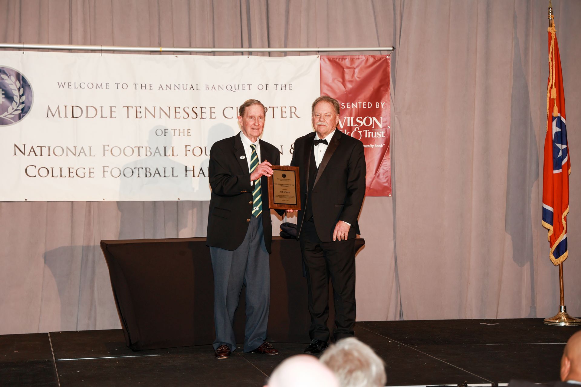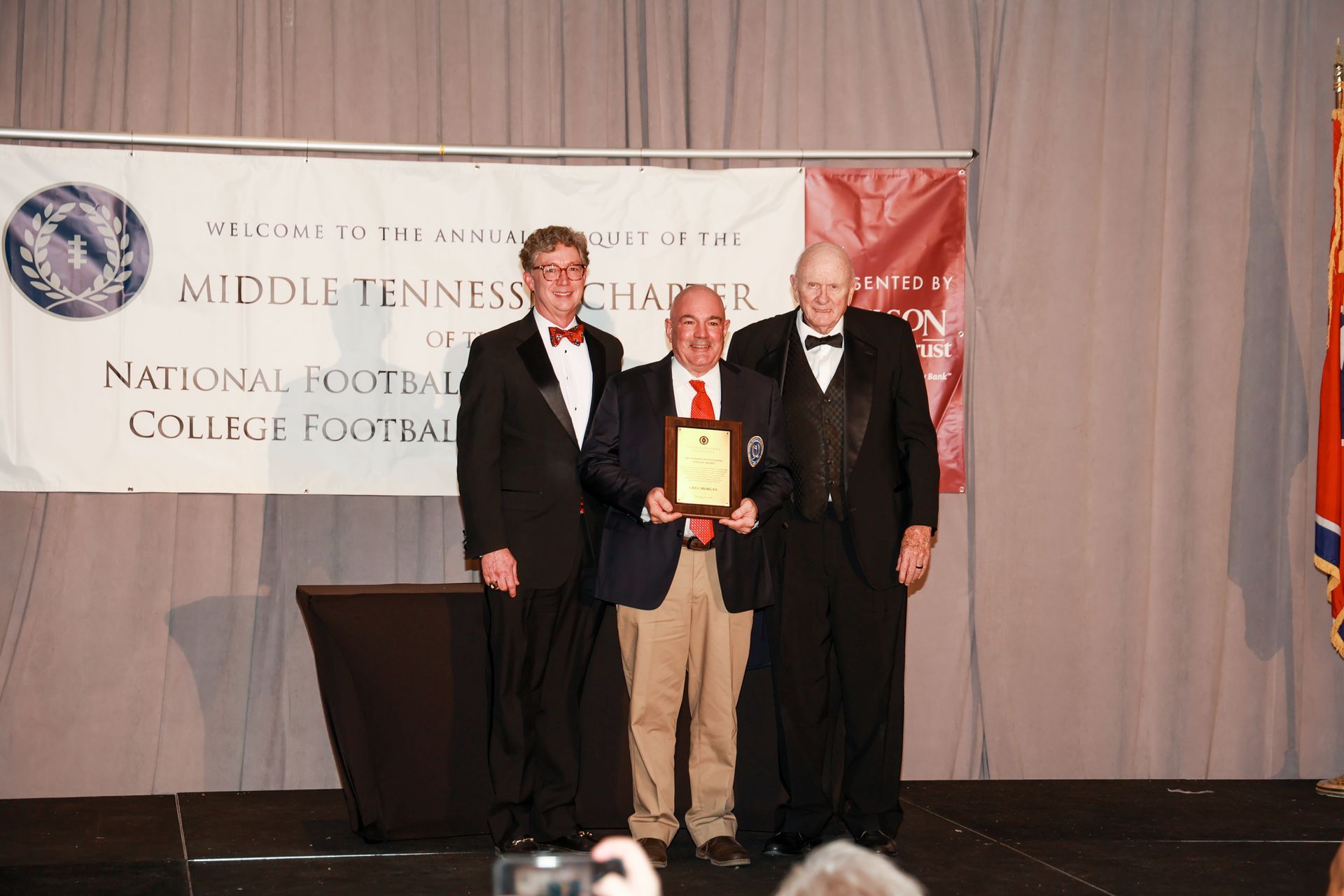 The Fred Russell Distinguished American Award recognizes supporters of American values and the Midstate community. First presented in 1969, it is named in honor of Mr. Russell, the former sports editor for Nashville’s afternoon newspaper, the Nashville Banner, from 1930-98. Russel was a founding member of this NFF chapter and won the Distinguished American Award from the National Football Foundation. Russell is a member of the National Sportscasters and Sportswriters Hall of Fame and the Tennessee Sports Hall of Fame.